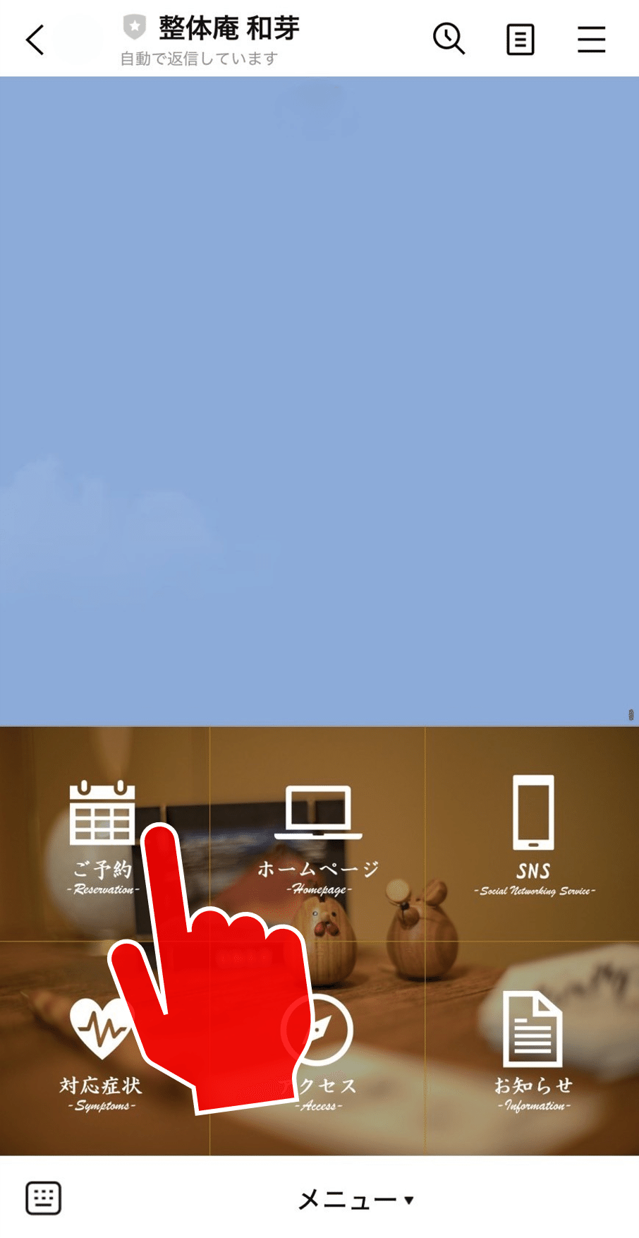 公式LINEのリッチメニュー内『ご予約』をタップ