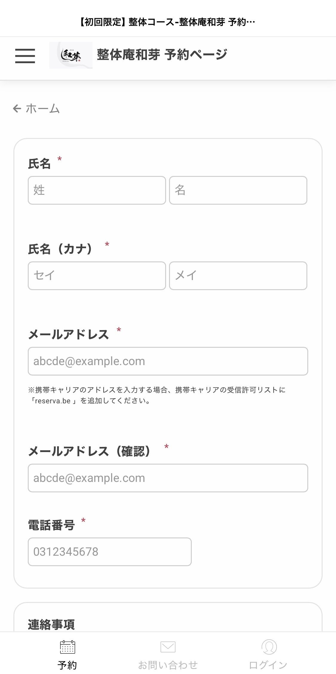 もしくは、ホームページ内予約ボタンより予約画面へ進んでください。